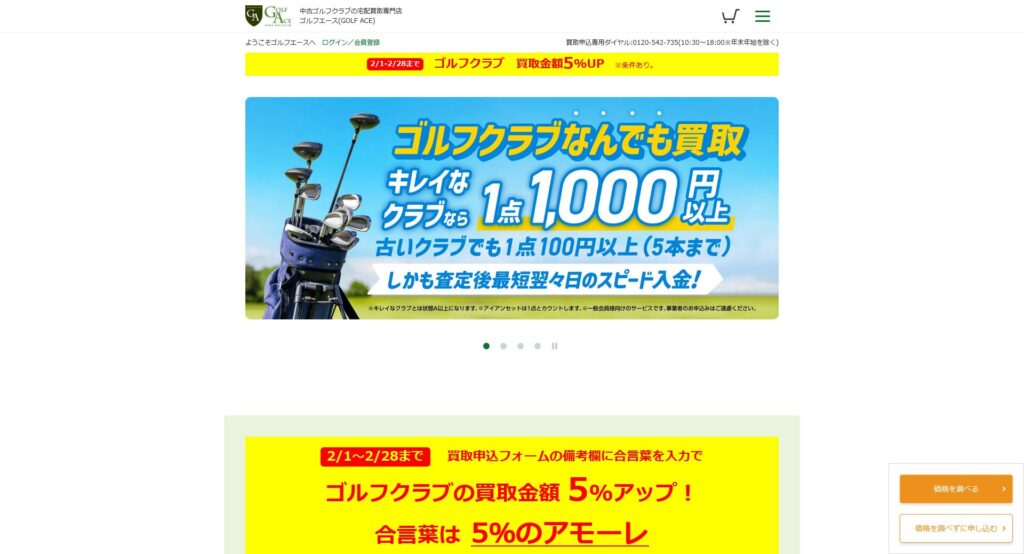 独自の無店舗経営により固定費を抑え、その分を査定価格に反映させているため、特にカスタムシャフト装着モデルや人気ブランドのウェアなどの高価買取に強みがあります。