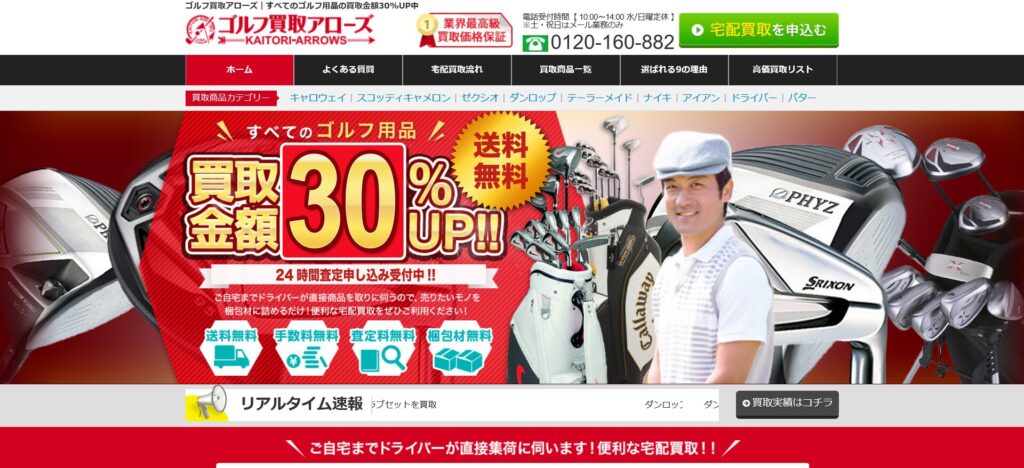 「ゴルフ買取アローズ」は、実店舗を持たないオンライン特化型の宅配買取サービスです。