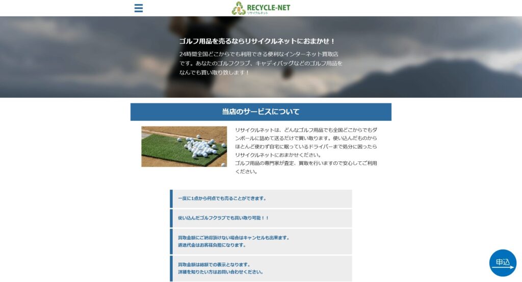 | 特徴 | 最短30分で回収、ゴルフ用品以外のまとめ売りも可能 |